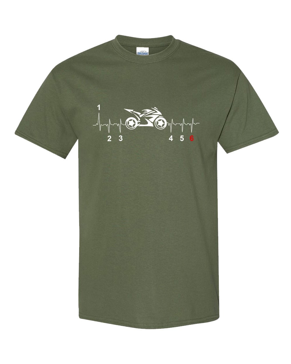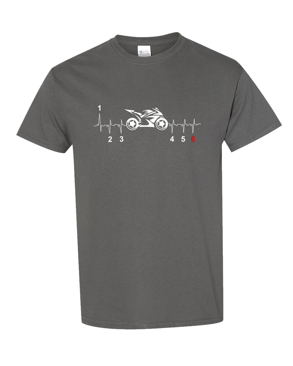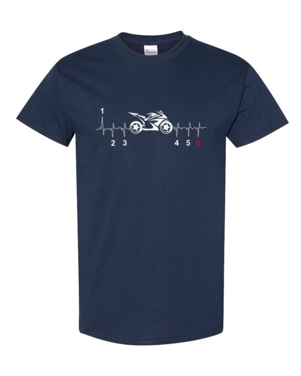 Featuring a prominent front-printed street bike design alongside a heartbeat pattern, this shirt symbolizes the deep connection between rider and machine that defines true motorcycle passion.