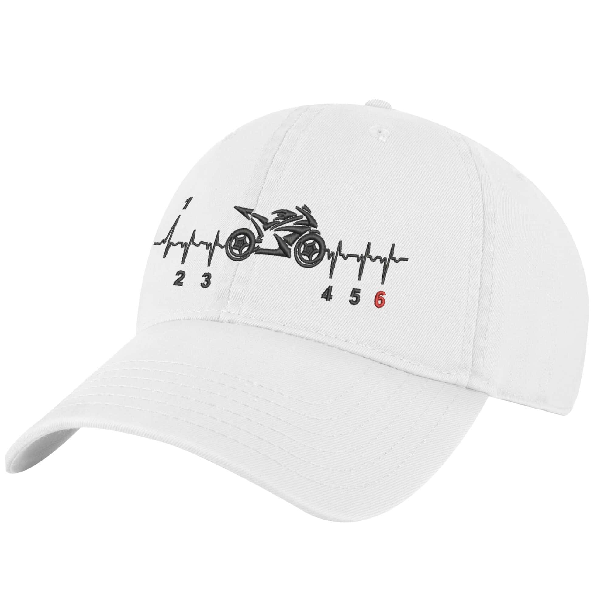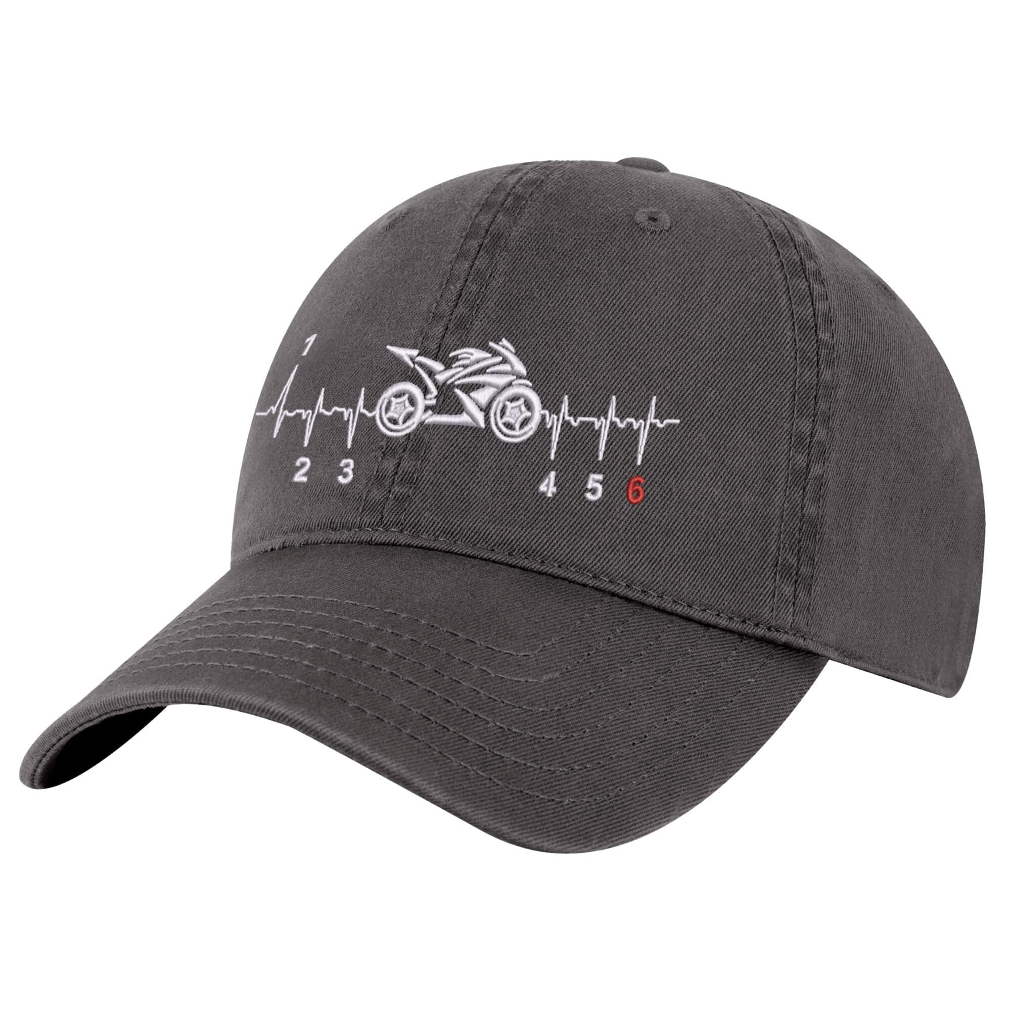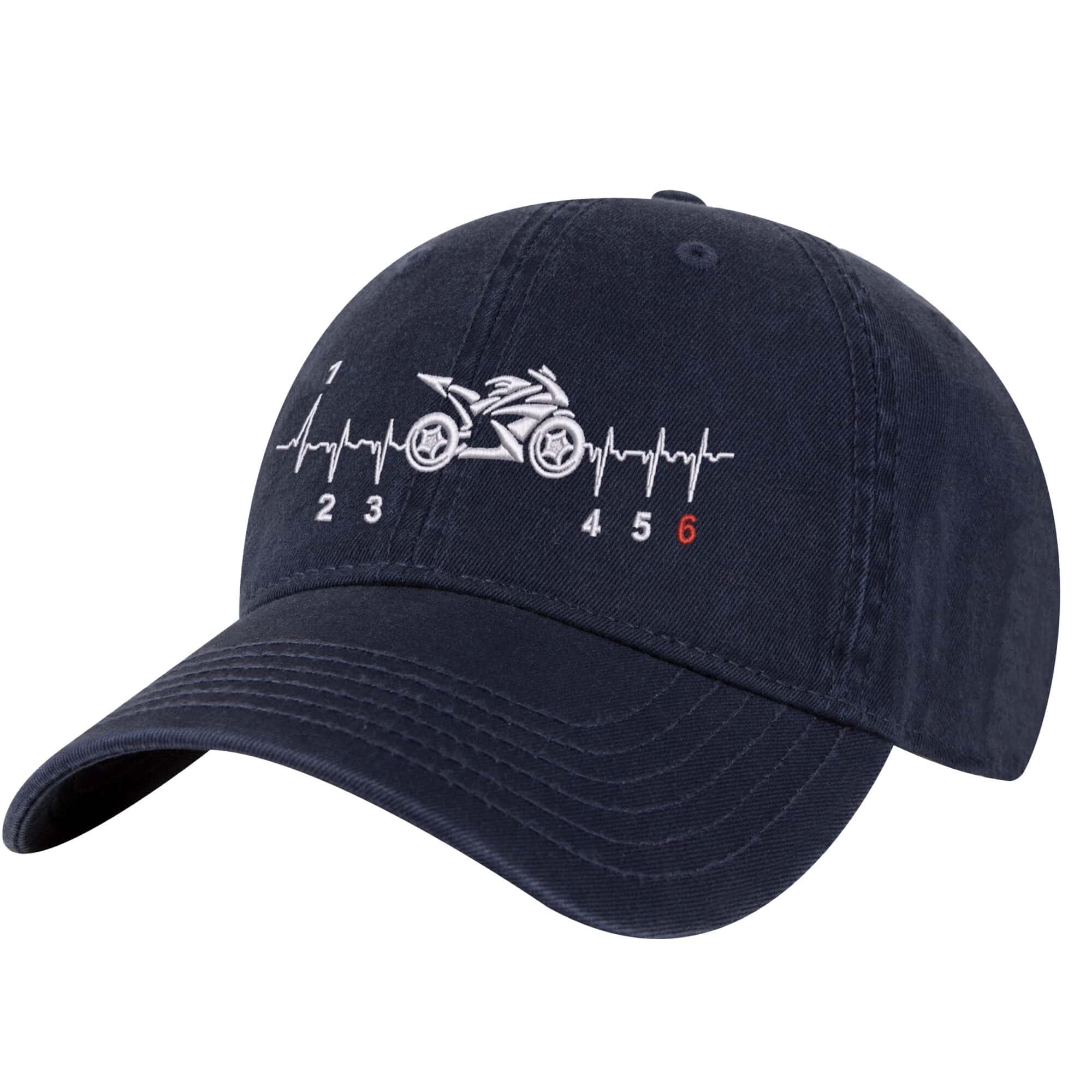 Motorcycle Baseball Cap – Rev up your style with this premium 100% cotton baseball cap designed for true motorcycle enthusiasts. This motorcycle ball cap features a striking embroidered street bike design paired with a heartbeat pattern, symbolizing the pulse of motorcycle life that runs through every rider’s veins.